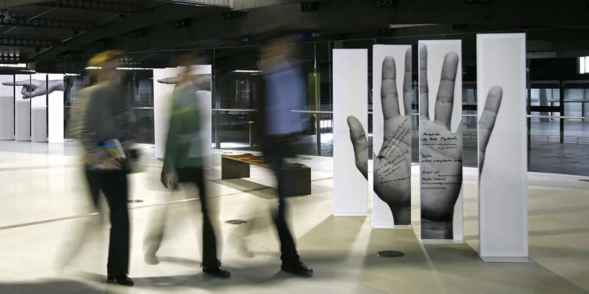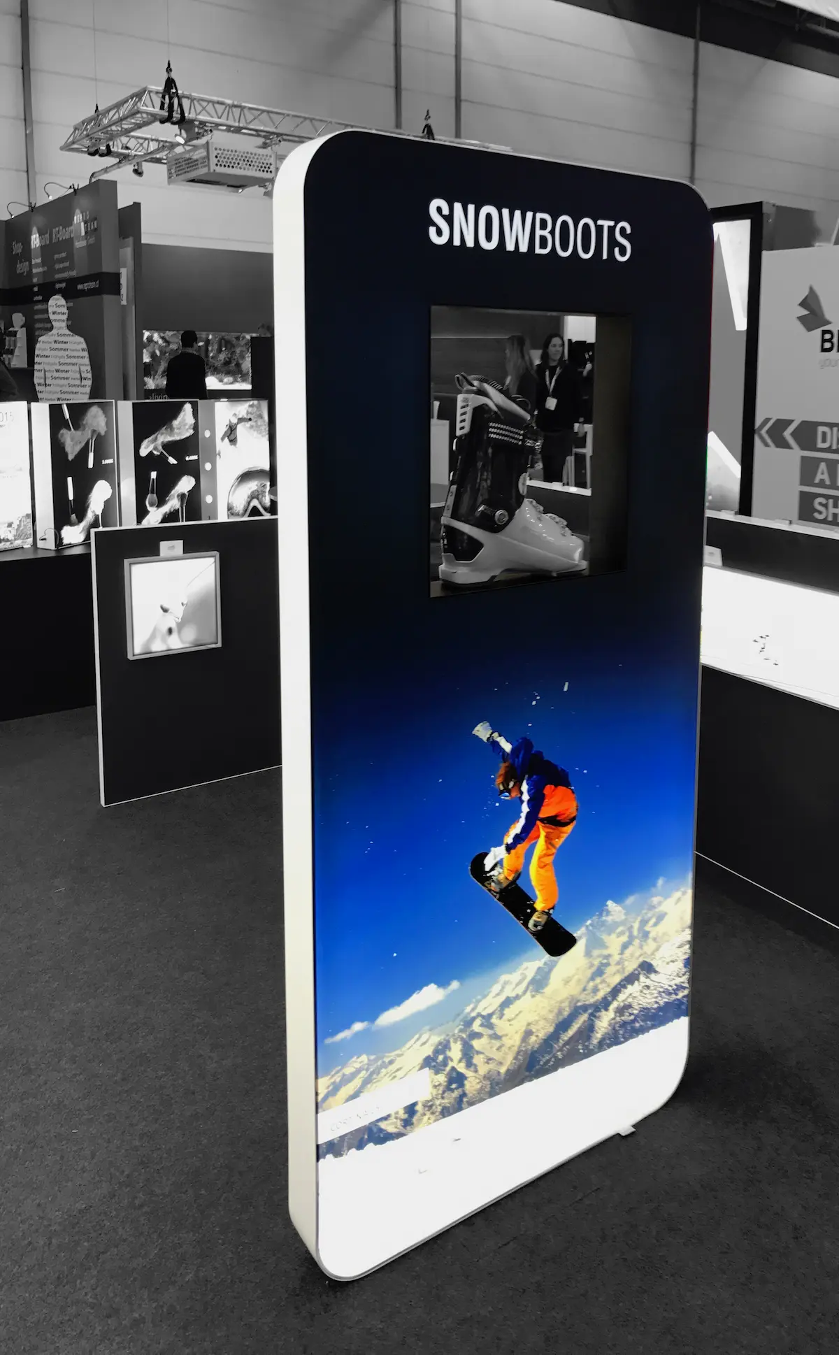 Marco autoportante con grafica a 2 caras para comunicación bidireccional. Con o sin luz.